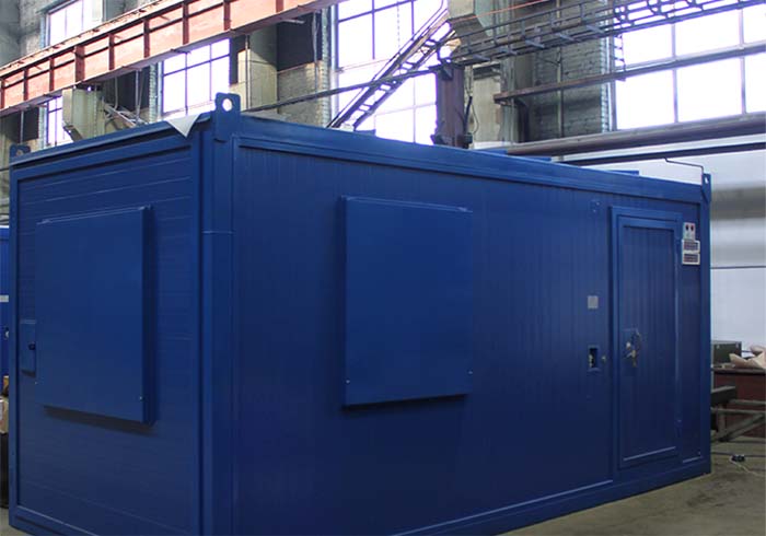 - Электроагрегат установлен в блок-контейнер с габаритными размерами 7600мм*2350мм*2690мм, выполненный из сэндвич-панелей. Контейнер обеспечивает необходимую тепло- и шумоизоляцию, защиту от внешних воздействий окружающей среды, соответствует климатическому исполнению УХЛ 1. Основной несущий корпус контейнера соответствует II-ой степени огнестойкости.